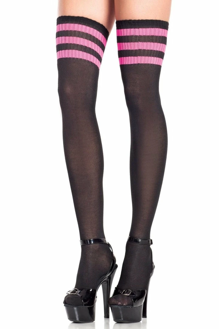Athletic Ribbed Thigh Highs with Three-Stripe Top.