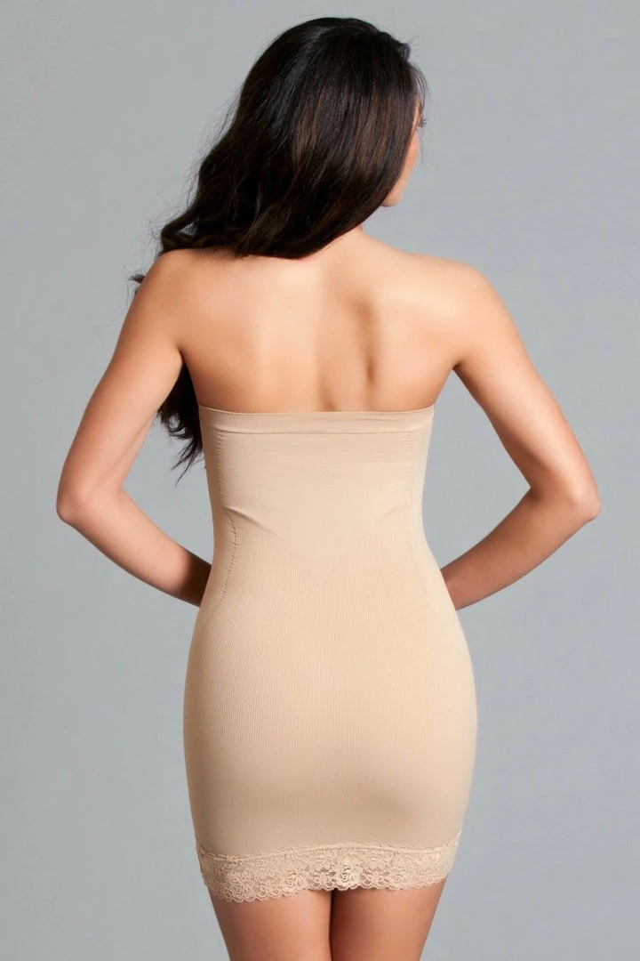 Ultra Light Strapless Dress Shaper. 90% nylon 10% spandex. Machine wash.