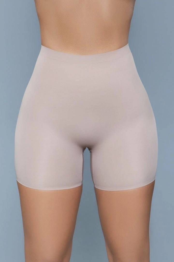 Nude seamless mid-waist and anti-chafing slip shorts.