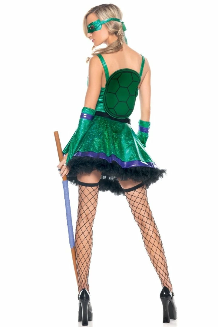 3 Piece NINJA BABE includes Stretched lycra turtle dress mask gauntlets. (Ninja Stick not included.(Black Industrial Net Thigh Highs and Black Petticoat sold separately)