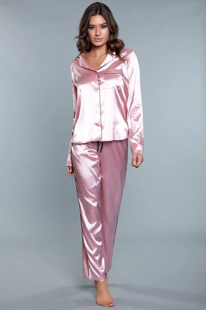Be Wicked Tessa Satin Set Rose