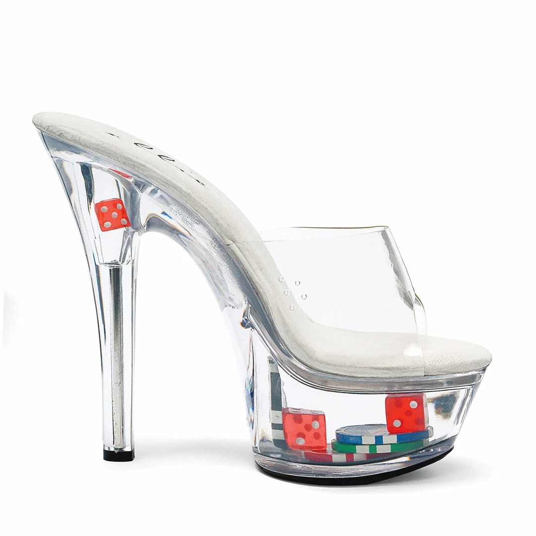 6 Heel Clear Mule W/ Dice & Poker Chips