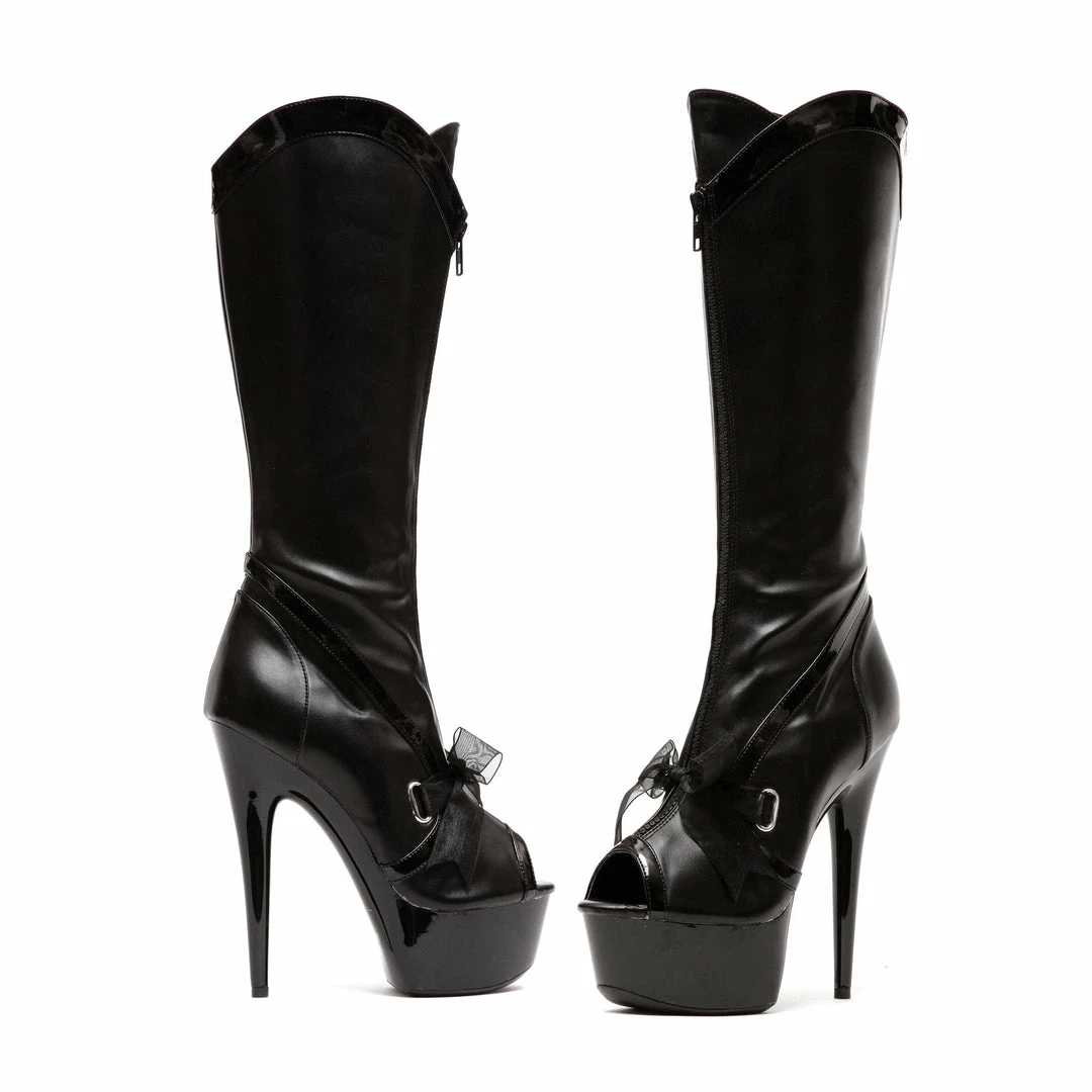 6 PEEPTOE KNEE HIGHT BOOT WITH RIBBON ACEENT