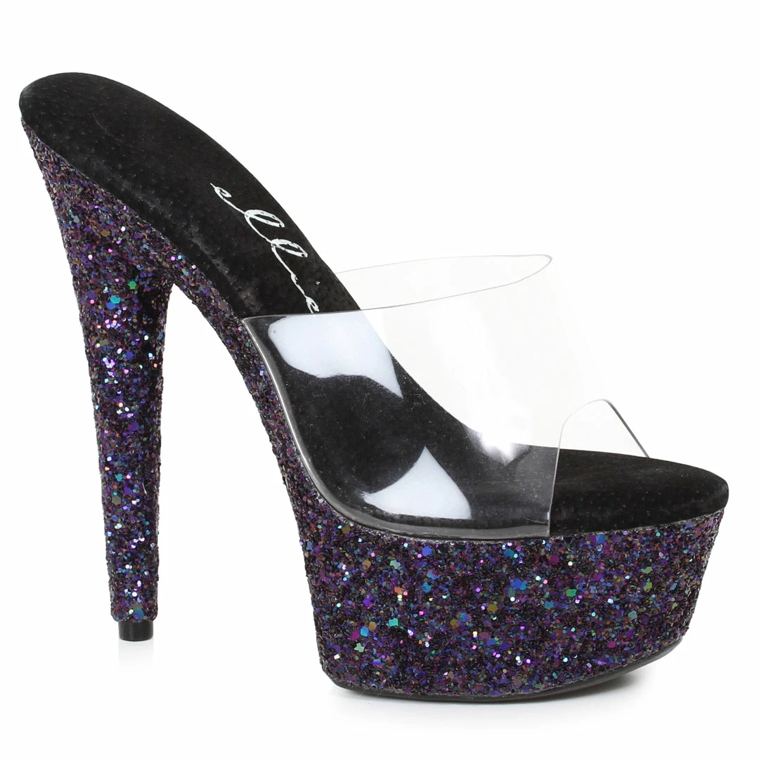 Ellie Shoes 6 Pointed Stiletto Mule Sandal With Glitter Platform