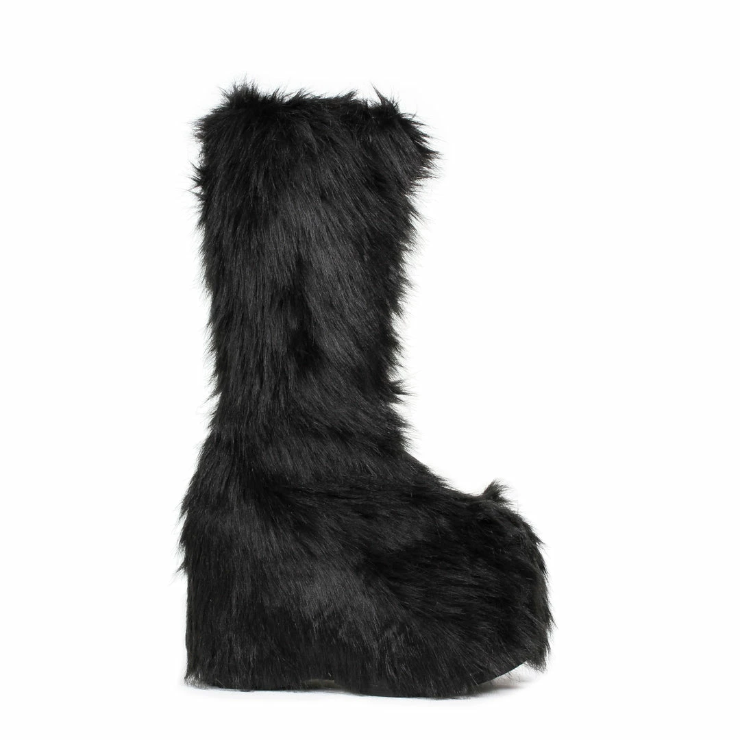 5 inch Chunky Heel Platform Faux Fur Boot with inner zipper