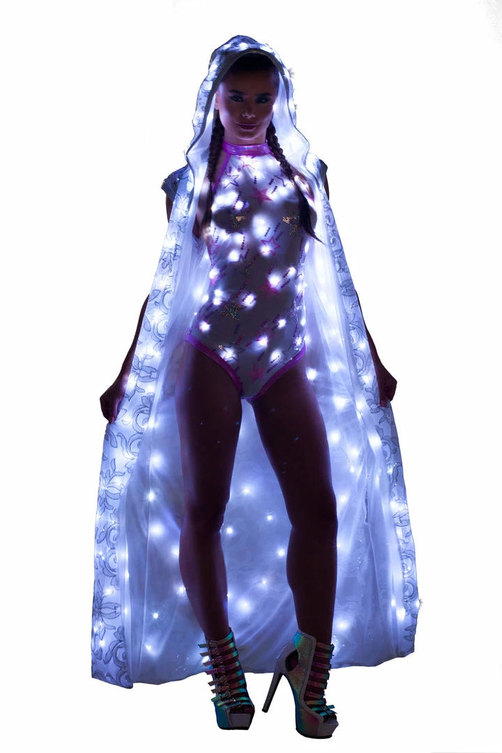 Pink Shooting Star Light-Up Sequin Mesh Bodysuit (Duster coat sold separately)