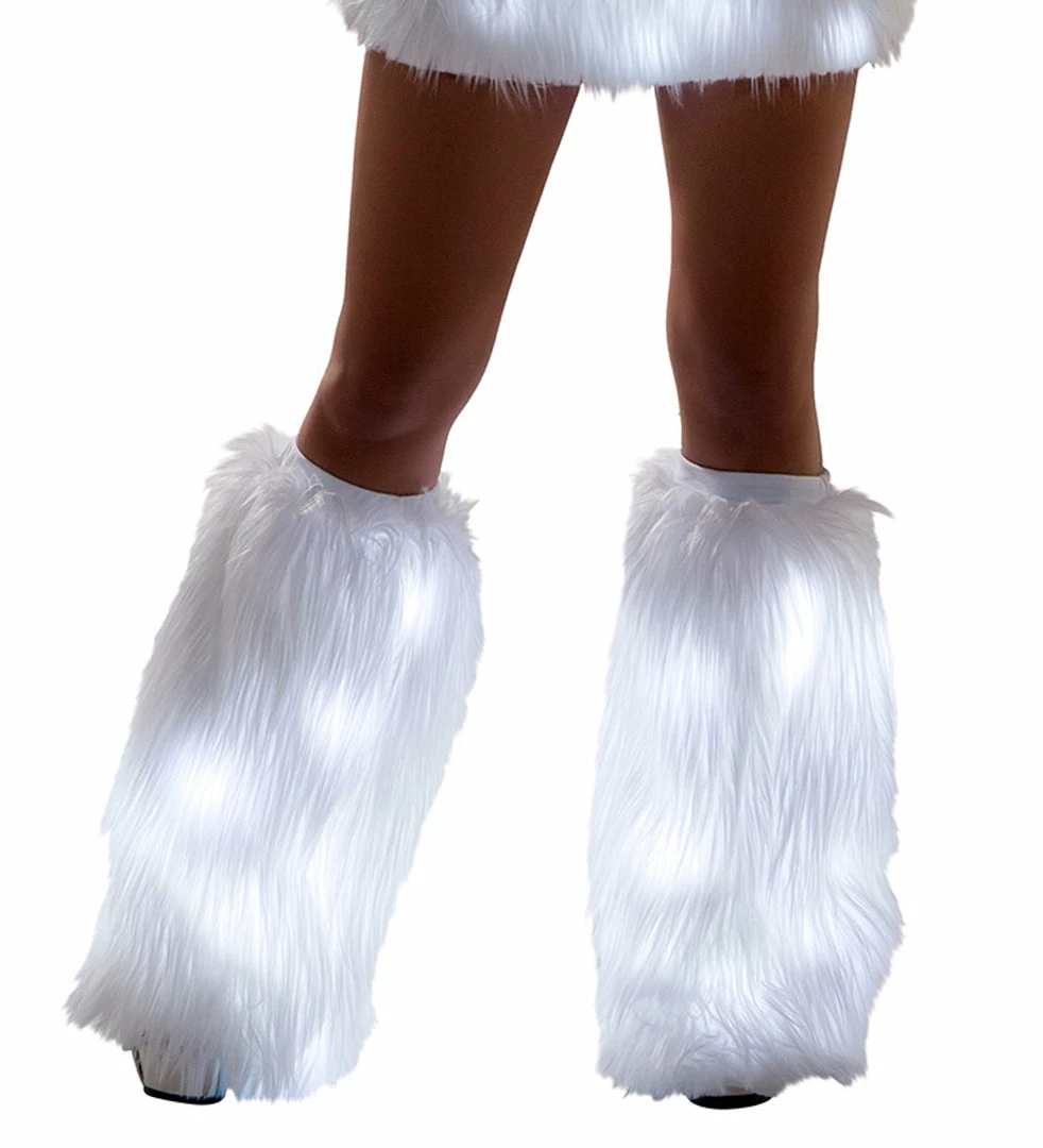 White Fur Light-up Legwarmers with White lights (batteries included). (Light-up hood, top, skirt and gloves sold separately)