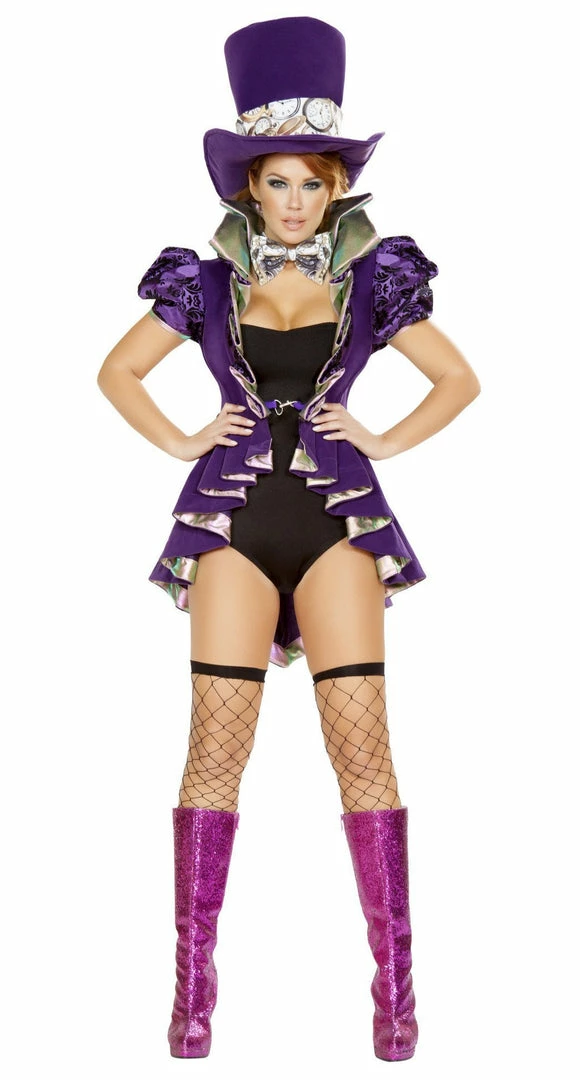 Includes Coat with Pleated Detail, Embossed Sleeves, Romper, Bow Tie, and Top Hat
