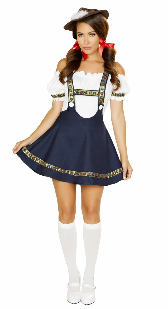 Includes Top, Suspender Skirt with Trim Detail and Hat