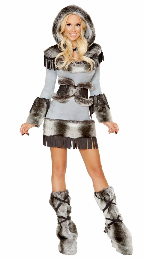 Includes Dress with Fringe and Faux Fur Detail,