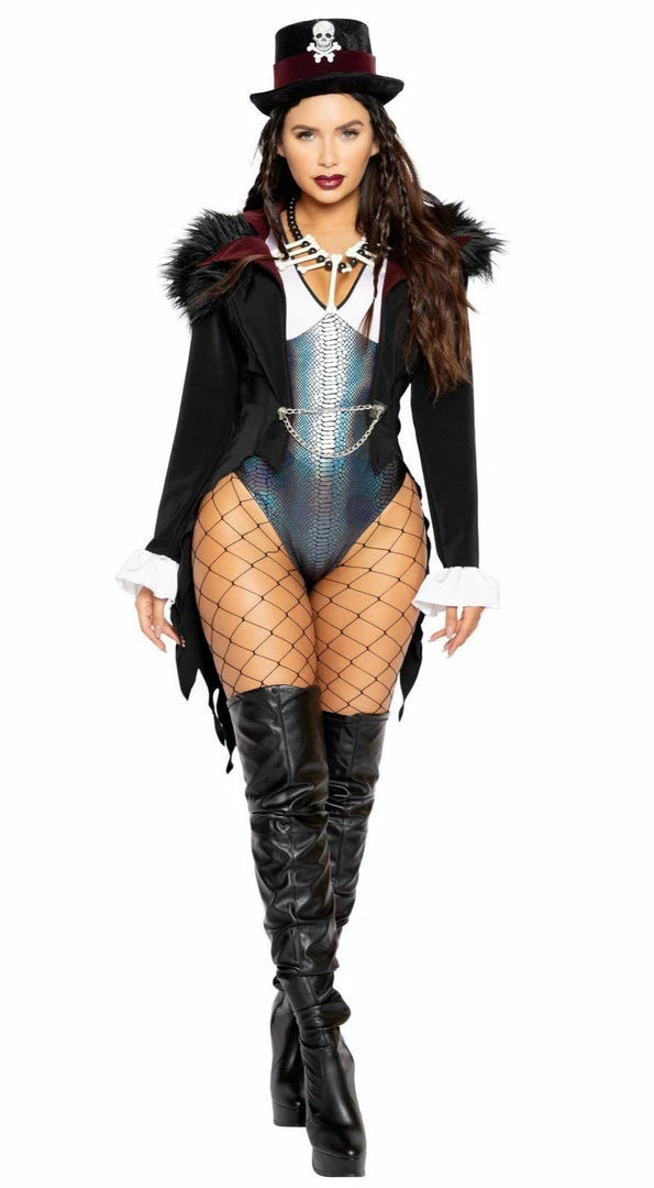 Includes Shredded Coat with Faux Fur and Chain Detail, Snakeskin Romper and Skeleton Hat